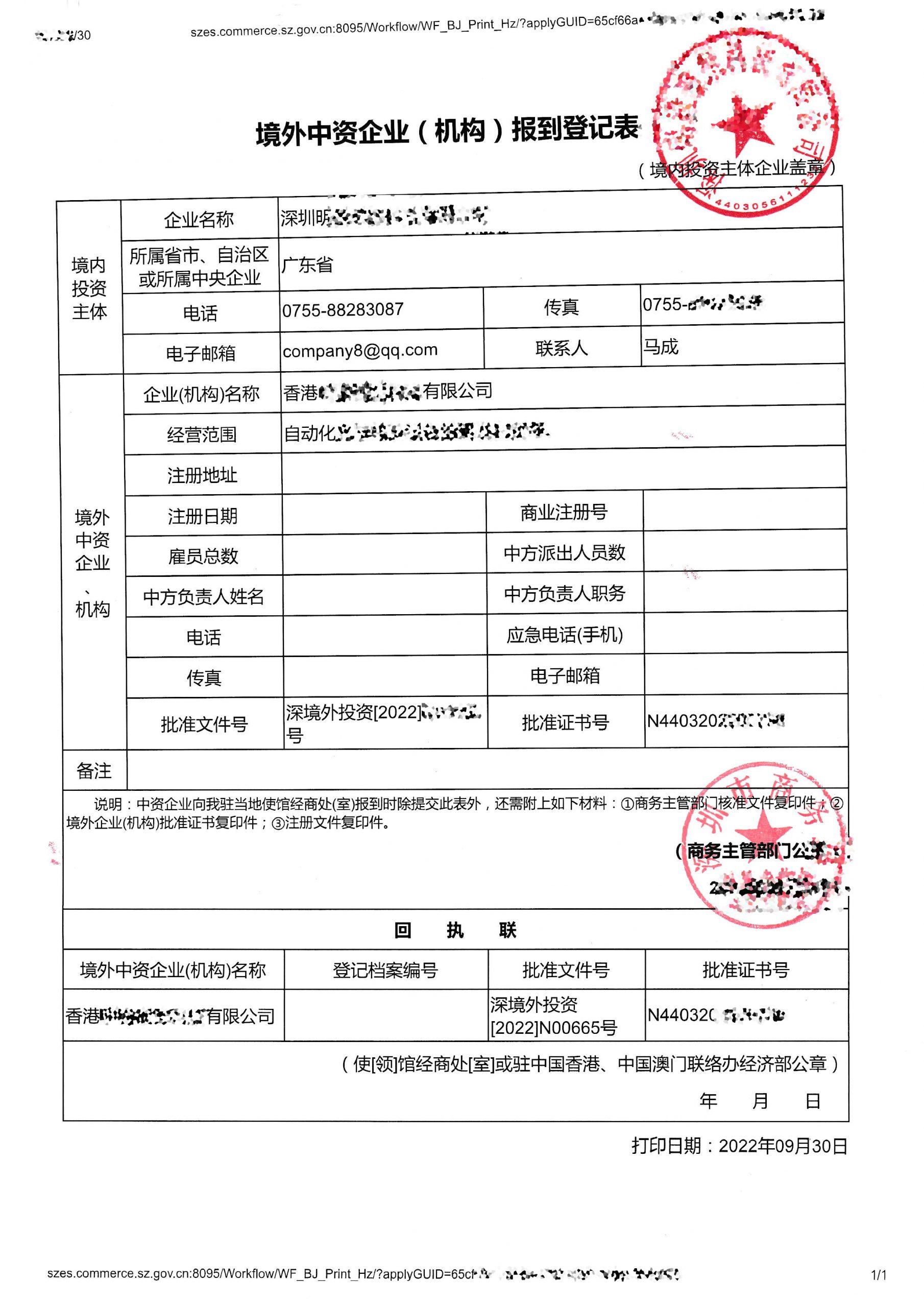 境外中资企业机构报道登记表-深圳市