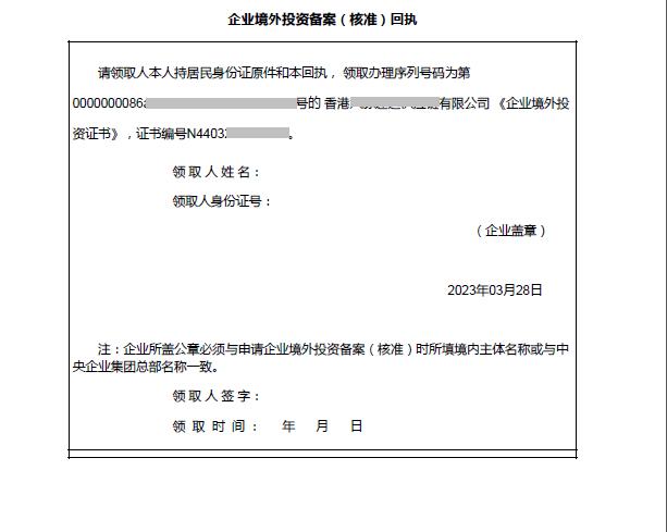 当内地公司递交境外投资备案申请,上级管理部门完成审批后,将可以去领取境外投资证书了。